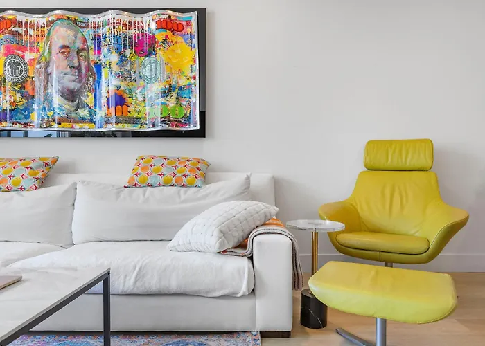 Este apartamento de 84 m² en Los Ángeles está a poco más de 10 minutos en coche del Paseo marítimo de Venice Beach y a poca distancia del Parque Tongva. Los huéspedes encontrarán el Downtown Santa Monica a 250 metros del apartamento.